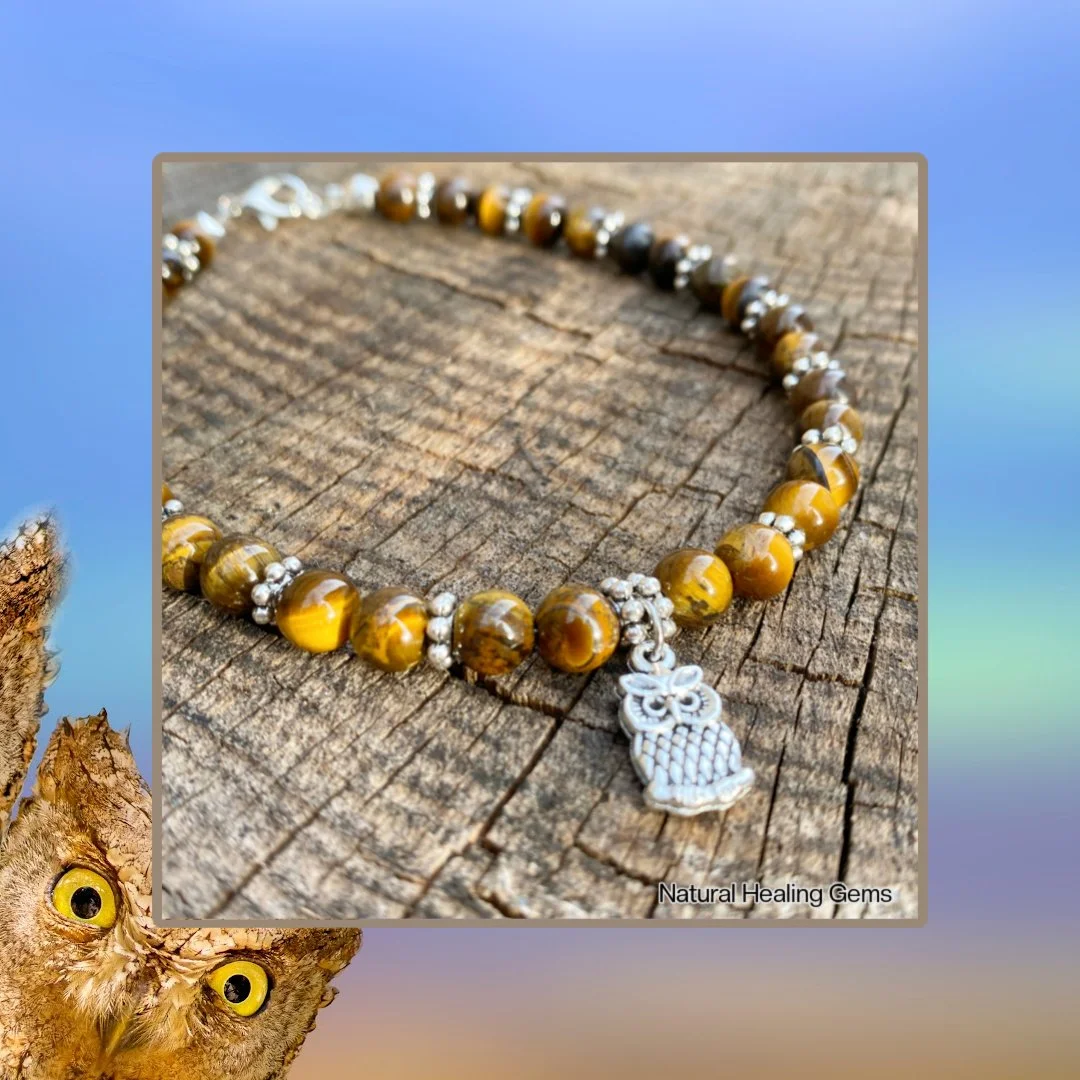 - Tiger Eye Gemstone Owl Anklet for Wisdom (Large)