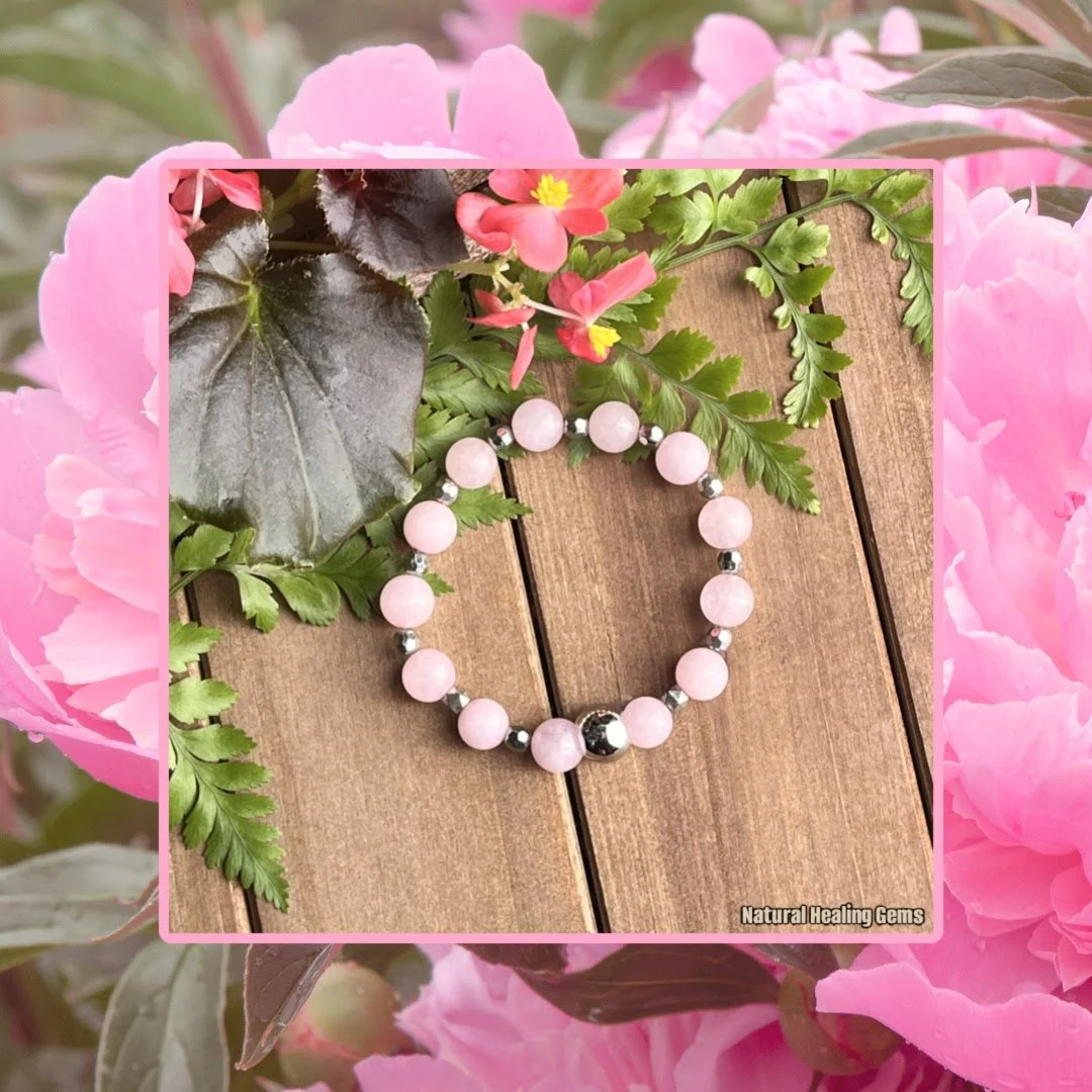 Boost cheerfulness with this pink crystal bracelet. Rose Quartz healing improves matters of the heart, it encourages self-respect and restores trust. This crystal stimulates forgiveness, self-worth, and loving kindness. It heals deep emotional wounds and confirms love that is found from within. Wear this Rose Quartz large bead bracelet to enhance positivity, joy, and love.