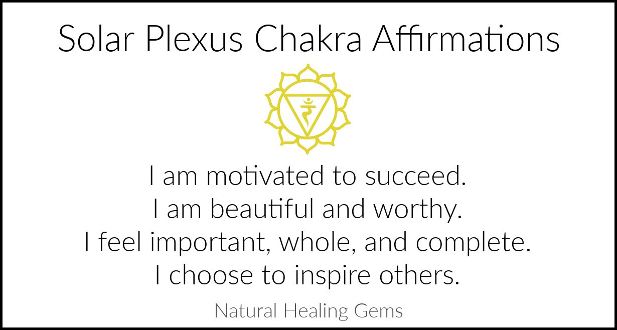 SOLAR PLEXUS CHAKRA: The Third Chakra. Represented by the color yellow. In charge of personal power, action, clarity of judgement, personal identity, and independence. The Solar Plexus Chakra determines confidence, intellect, and personality.