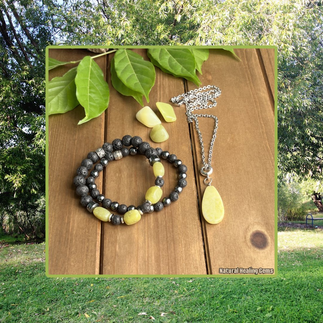 Light Green Serpentine Healing Jewelry Set for Kundalini Awakening