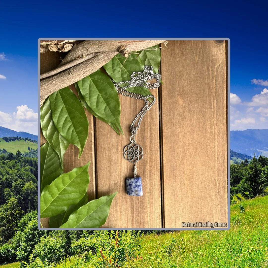 - Sodalite Flower of Life Necklace for Throat Chakra Healing