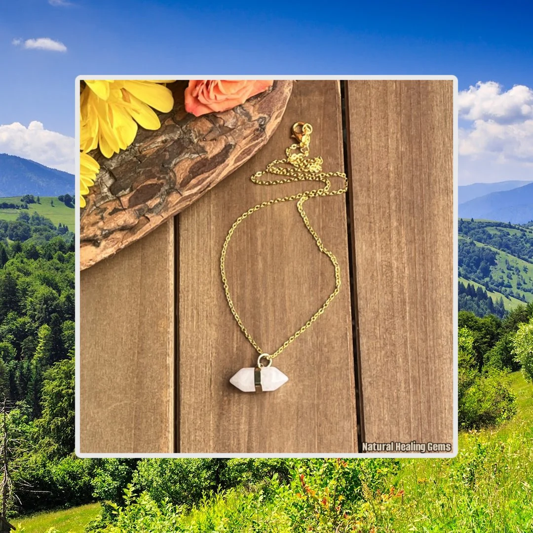 Crystal Quartz clears mental distractions and improves the ability to manifest. Wear this Quartz double pointed necklace to reach a state of clarity and spiritual balance. Focus, cleanse, and attract abundance with this natural crystal necklace.